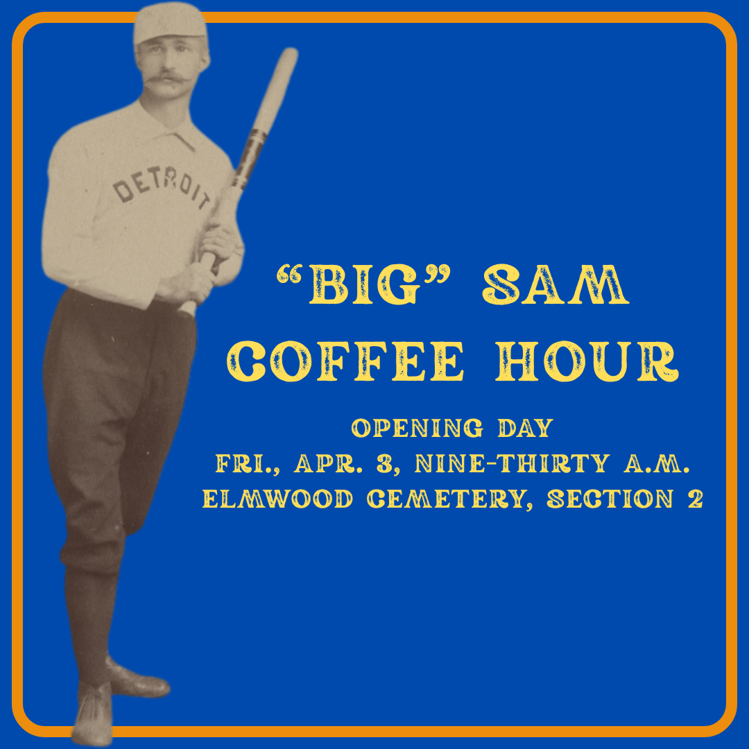 Your new favorite Opening Day tradition returns for 2026! To celebrate one of Detroit's greatest-ever baseball players and to send up a prayer for another exciting season of Detroit baseball, we'll gather on Section 2 for coffee and donuts on Opening Day, Friday, April 3, at 9:30 a.m. Stop by Elmwood before you head to the ballpark and pay tribute to "Big" Sam Thompson, one of the most fearsome sluggers of all time and a Baseball Hall of Famer since 1974. (Also to his wife Ida, who was an Opening Day celebrity until her death in 1947.) This casual gathering will last for about an hour or until we run out of coffee. Stay tuned for more details to come early in 2026!