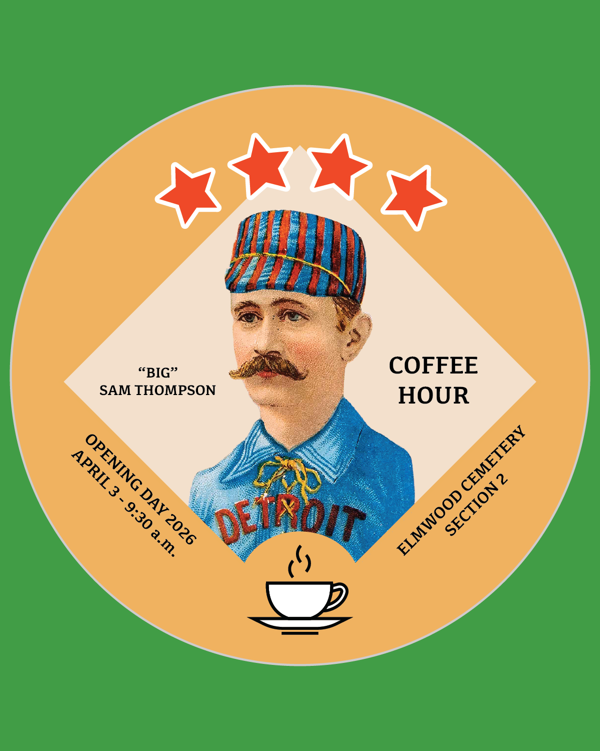 Your new favorite Opening Day tradition returns for 2026! To celebrate one of Detroit's greatest-ever baseball players and to send up a prayer for another exciting season of Detroit baseball, we'll gather on Section 2 for coffee and donuts on Opening Day, Friday, April 3, at 9:30 a.m. Stop by Elmwood before you head to the ballpark and pay tribute to "Big" Sam Thompson, one of the most fearsome sluggers of all time and a Baseball Hall of Famer since 1974. (Also to his wife Ida, who was an Opening Day celebrity until her death in 1947.) This casual gathering will last for about an hour or until we run out of coffee. More details here.